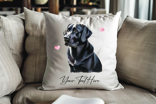 Personalised Black Labrador Hearts Cushion Keepsake Gift