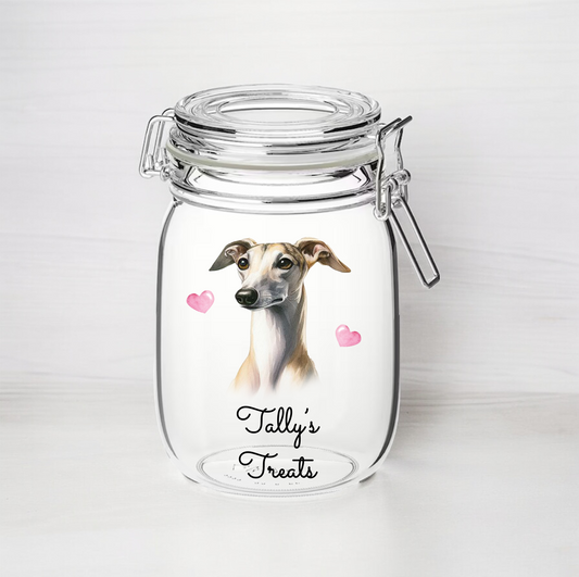 Personalised Whippet - Dog Treat Kilner Style Gift Jar - DGJR51
