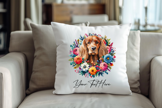 Personalised Cocker Spaniel - Floral Summer Dog Wreath Keepsake Gift Cushion - Style A