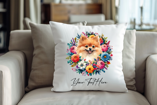 Personalised Pomeranian - Floral Summer Dog Wreath Keepsake Gift Cushion