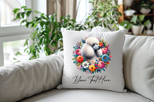 Personalised Poodle - Floral Summer Dog Wreath Keepsake Gift Cushion