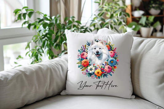 Personalised Samoyed - Floral Summer Dog Wreath Keepsake Gift Cushion