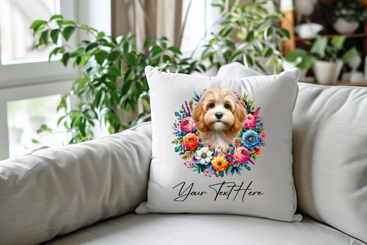 Personalised Cockapoo - Floral Summer Dog Wreath Keepsake Gift Cushion