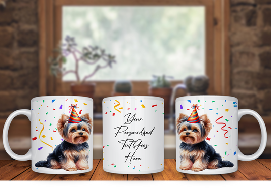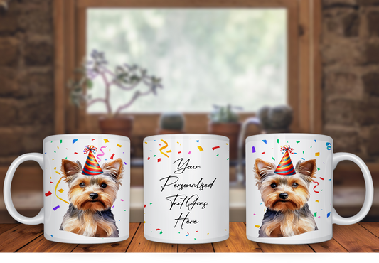 Personalised Dog Gift Mug - Yorkshire Terrier with Birthday Congratulations Party Hat B