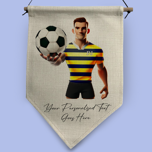 Celebrate your love for the beautiful game with our football collection, featuring personalised cushions, tote bags, hanging decorations, tankards, and mugs. Perfect for fans and players alike, each item showcases bold football-inspired designs that can be customised with team names, player numbers, or special messages to make every piece unique.