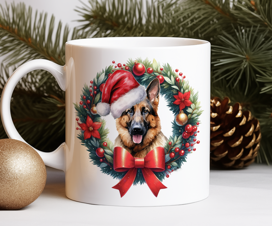 Personalised German Shepherd Dog Christmas Wreath Gift Mug