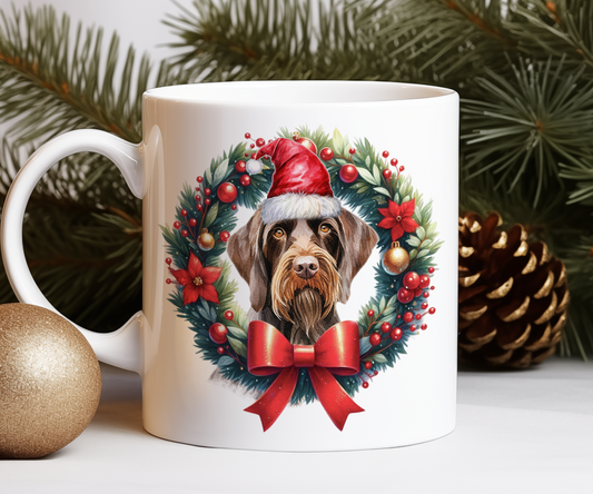 Personalised German Wirehaired Pointer Dog Christmas Wreath Gift Mug