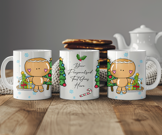 Personalised Whimsical Christmas Gingerbread Boy Gift Mug