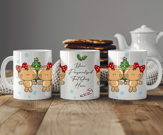 Personalised Whimsical Christmas Gingerbread Couple - Gift Mug