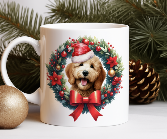 Personalised Golden Doodle Dog Christmas Wreath Gift Mug