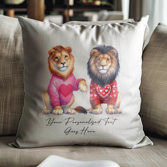 Personalised Couple of Lions in Love Keepsake Gift Cushion