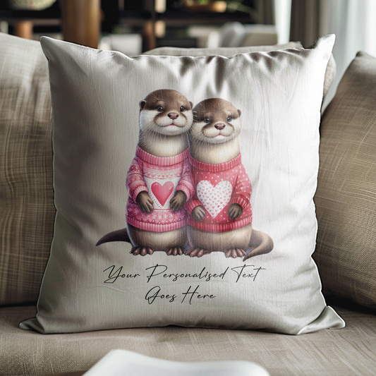 Personalised Couple of Otters in Love Keepsake Gift Cushion