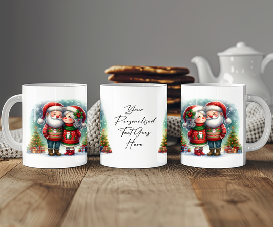 Personalised Mr and Mrs Santa Claus Couple in Christmas Jumpers Gift Mug - Style B