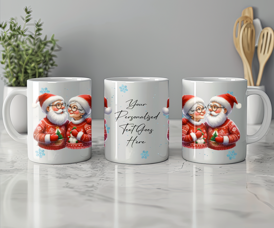 Personalised Mr and Mrs Santa Claus Couple in Christmas Jumpers Gift Mug