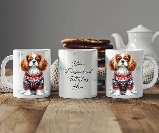 Personalised King Charles Spaniel - Dog Christmas Jumper Gift Mug - Style B