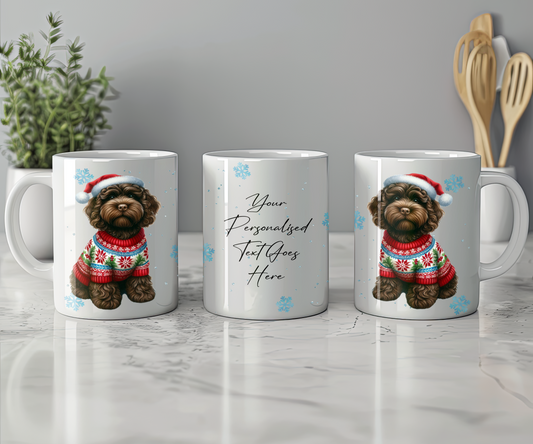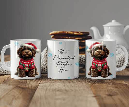 Personalised Chocolate Cockapoo Dog Christmas Jumper Gift Mug - Style B