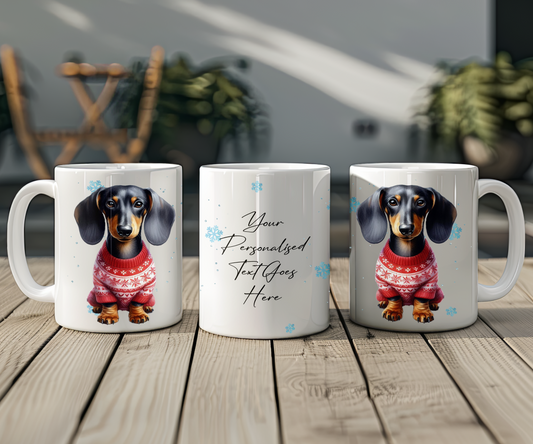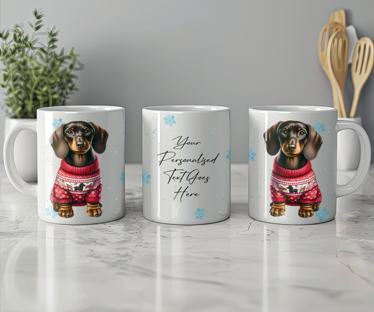 Personalised Dachshund Dog Christmas Jumper Gift Mug - Style C