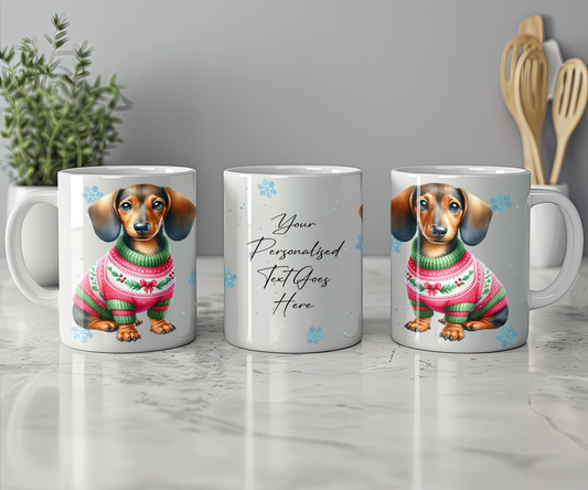 Personalised Dachshund Dog Christmas Jumper Gift Mug