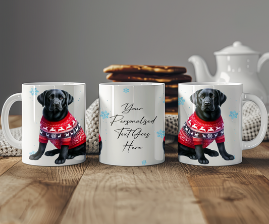 Personalised Black Labrador Dog Christmas Jumper Gift Mug