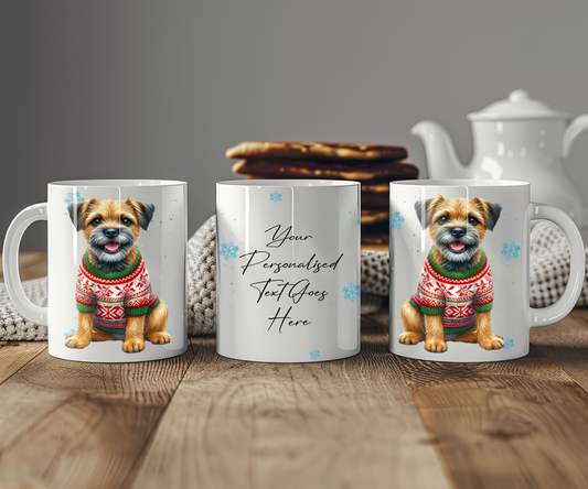 Personalised Border Terrier Dog Christmas Jumper Gift Mug