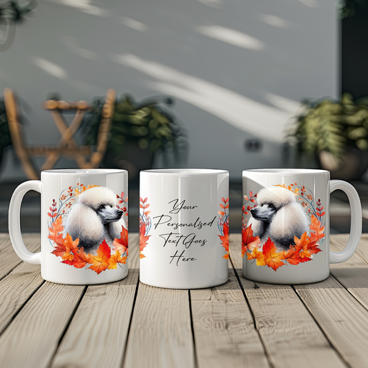 Poodle in an Autumn Wreath Personalised Dog Gift Mug