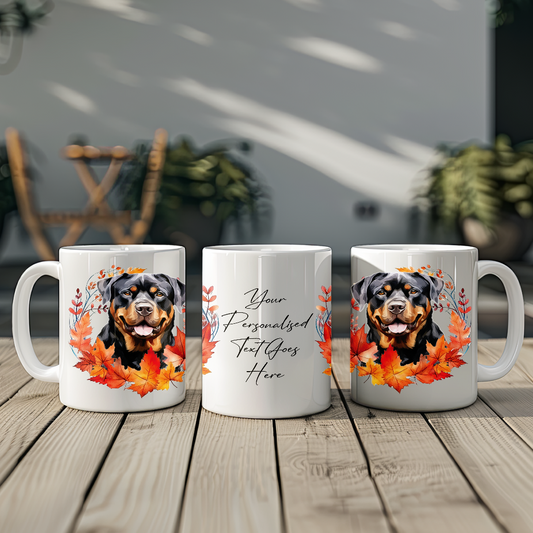 Rottweiler in an Autumn Wreath Personalised Dog Gift Mug