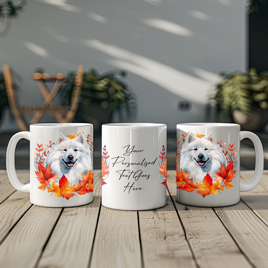 Samoyed in an Autumn Wreath Personalised Dog Gift Mug