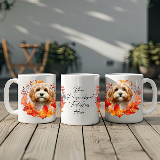 Sand Cockapoo in an Autumn Wreath Personalised Dog Gift Mug