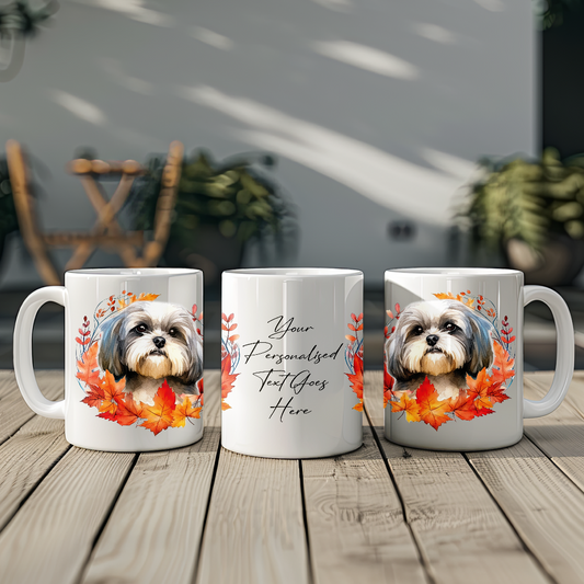 Shih Tzu in an Autumn Wreath Personalised Dog Gift Mug