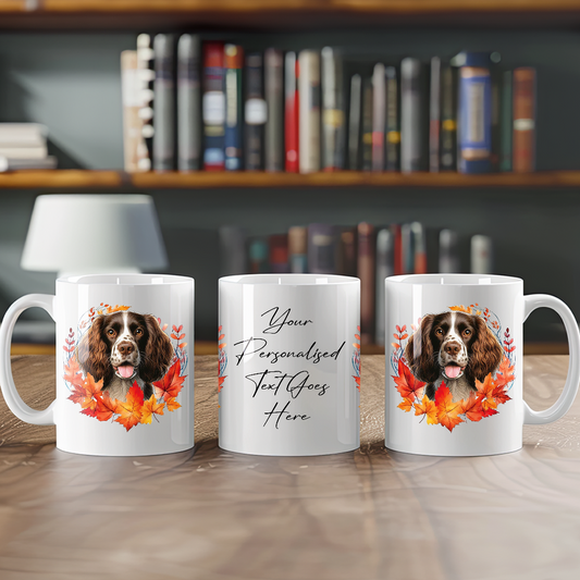 Welsh Springer Spaniel in an Autumn Wreath Personalised Dog Gift Mug