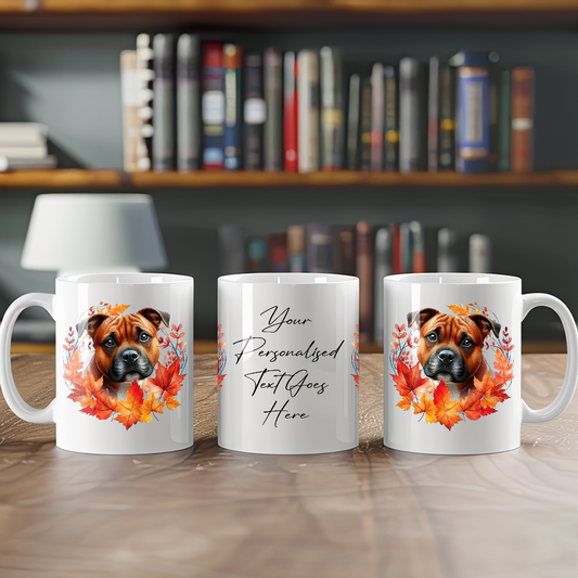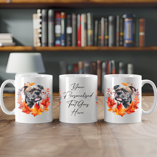 Staffordshire Bull Terrier in an Autumn Wreath Personalised Dog Gift Mug