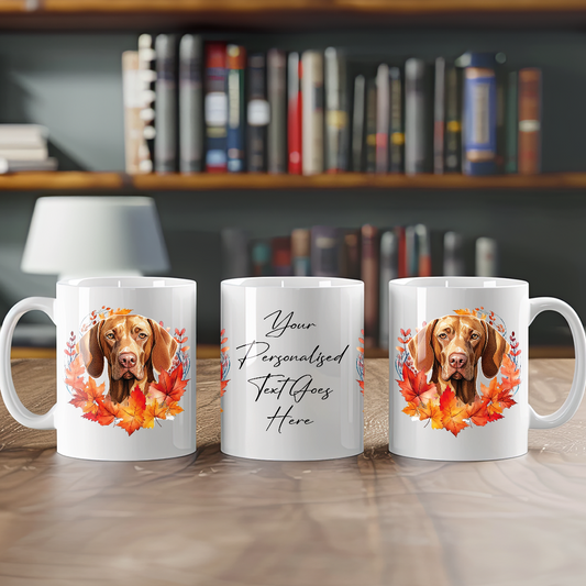 Vizsla in an Autumn Wreath Personalised Dog Gift Mug