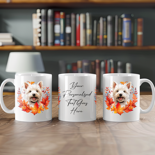 West Highland Terrier in an Autumn Wreath Personalised Dog Gift Mug