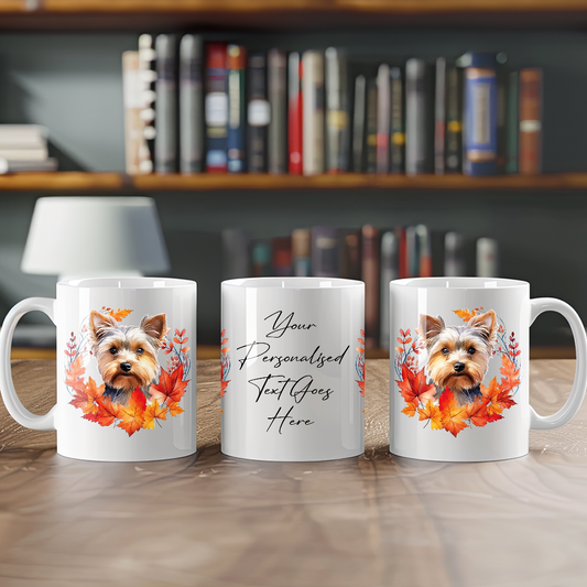 Yorkshire Terrier in an Autumn Wreath Personalised Dog Gift Mug