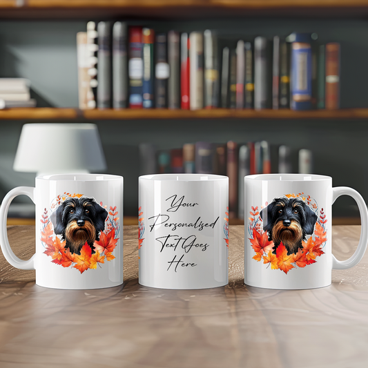 Wirehaired Dachshund in an Autumn Wreath Personalised Dog Gift Mug