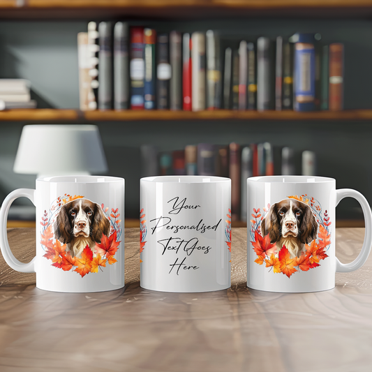 English Springer Spaniel in an Autumn Wreath Personalised Dog Gift Mug
