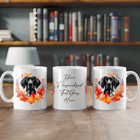 Black and White German Shorthaired Pointer in an Autumn Wreath Personalised Dog Gift Mug