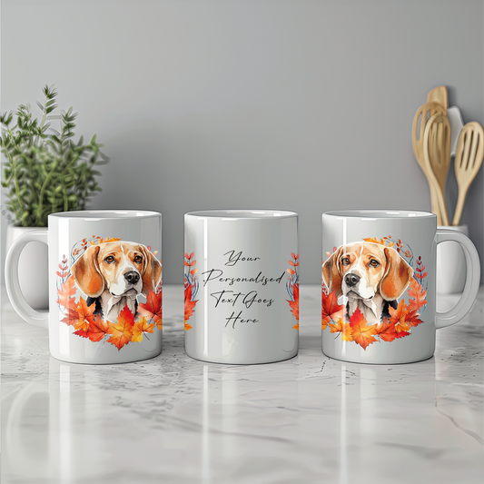 Beagle in an Autumn Wreath Personalised Dog Gift Mug