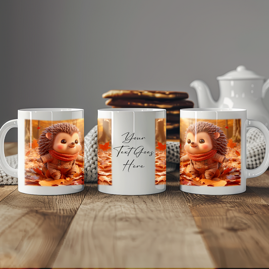 Personalised Hedgehog Playing in Autumn Leaves Gift Mug