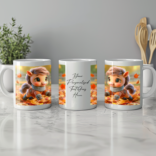 Personalised Horse Playing in Autumn Leaves Gift Mug D