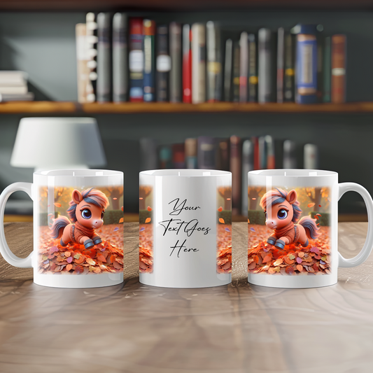 Personalised Horse Playing in Autumn Leaves Gift Mug B
