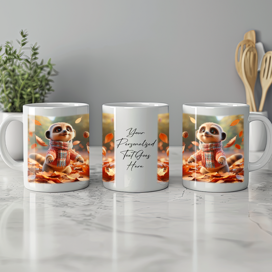 Personalised Meerkat Playing in Autumn Leaves Gift Mug
