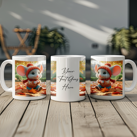 Personalised Mouse Playing in Autumn Leaves Gift Mug