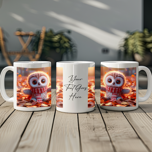 Personalised Owl Playing in Autumn Leaves Gift Mug