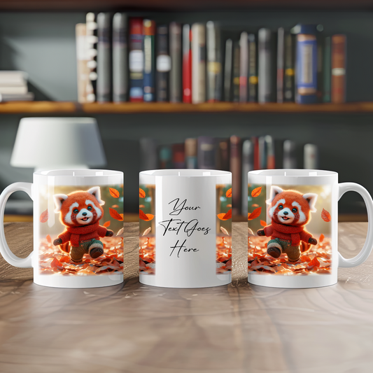Personalised Red Panda Playing in Autumn Leaves Gift Mug