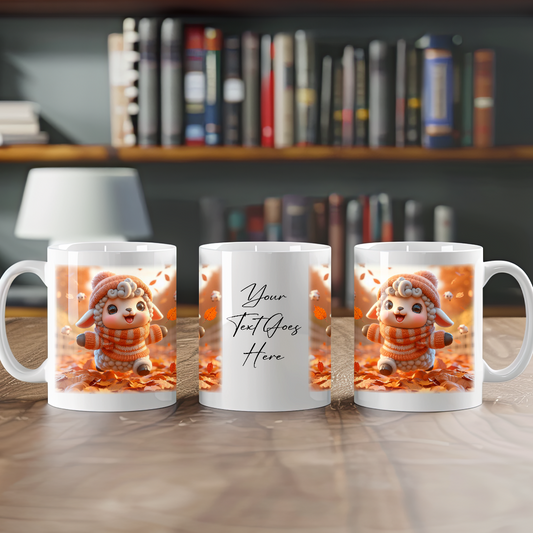 Personalised Sheep Playing in Autumn Leaves Gift Mug