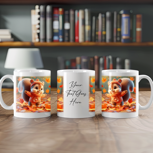 Personalised Squirrel Playing in Autumn Leaves Gift Mug