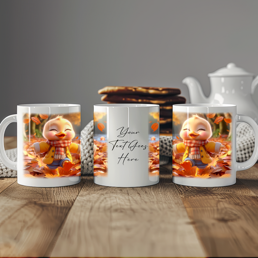 Personalised Duck Playing in Autumn Leaves Gift Mug