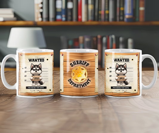 Personalised Siberian Husky on WANTED Dog Gift Mug