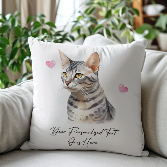 Personalised Egyptian Mau Cat Love Hearts - Cushion Cover Gift